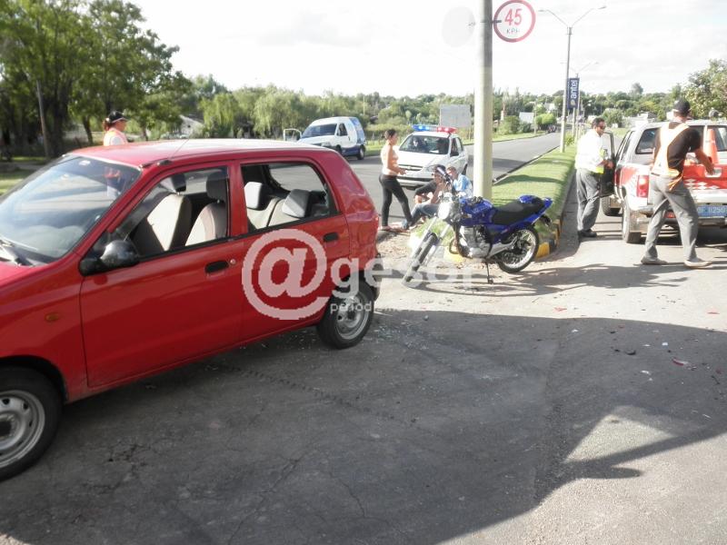 Un auto y una moto chocaron en la jornada de este lunes, en la intersección de Bulevar Viera y Benavidez y Constituyente. Según pudo saber @gesor, el primero de los vehículos venía circulando por Viera y Benavidez con dirección al norte y al intentar doblar en la rotonda de constituyente para tomar el bulevar hacia el sur, de atrás le impactó una moto que venía en el mismo sentido a alta velocidad. Como lo muestra la fotografía, a raíz del impacto el auto quedó mirando en sentido contrario al que venia, sufriendo algunas lesiones el conductor de la moto involucrada en el accidente. El auto era conducido por Diego Erlatz, mientras que el rodado era guiado por Washington Zechini.
