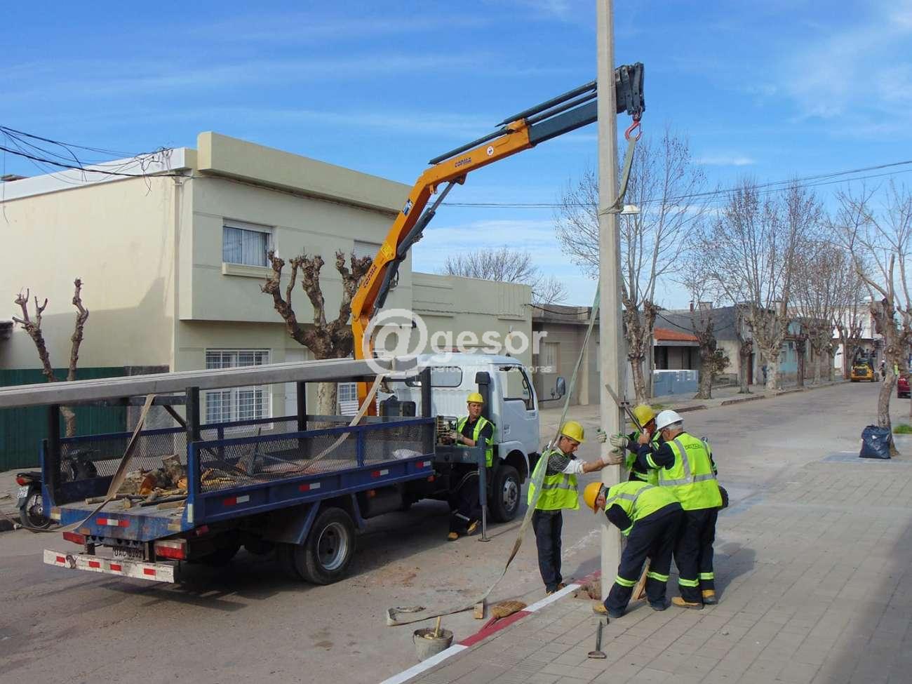 Con la colocación de columnas a ritmo sostenido, avanzan los trabajos para el recambio de luminarias en la ciudad de Dolores en el marco del Plan de Eficiencia Energética de la Intendencia de Soriano.