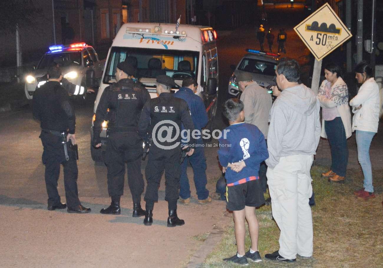 Próximo a las 0.15 horas de este sábado, en momentos en que el automóvil Volkswagen Gol KAA 1355, conducido por un masculino mayor de edad acompañado de su esposa se dirigía por Rivas de Este a Oeste, con la luz verde del semáforo cediéndole el paso, fue embestido violentamente en su costado izquierdo por una moto que circulaba de Sur a Norte a alta velocidad, según testigos junto a otra moto en una de las "picadas" que acostumbran a hacer en esa zona de la ruta.