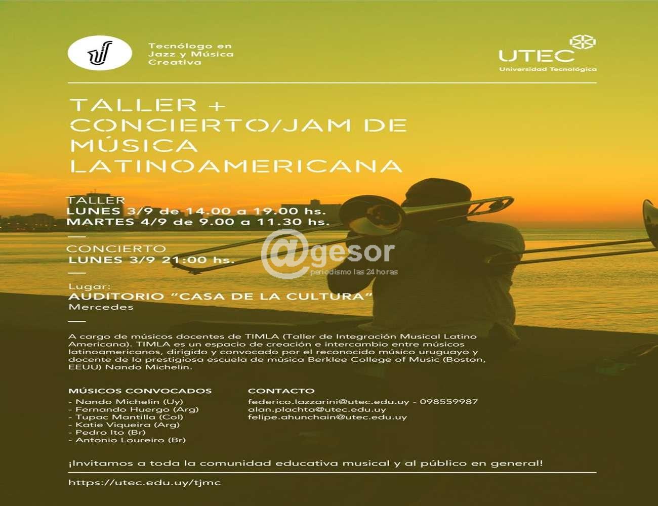 El 3 y 4 de setiembre próximo se realizará en Mercedes un concierto y Jam de música latinoamericana a cargo de los músicos Nando Michelín (Uruguay), Fernando Huergo (Argentina) y Tupac Mantilla (Colombia). Esta actividad se realizará en el auditorio de Casa de la Cultura, siendo organizada por la UTEC.