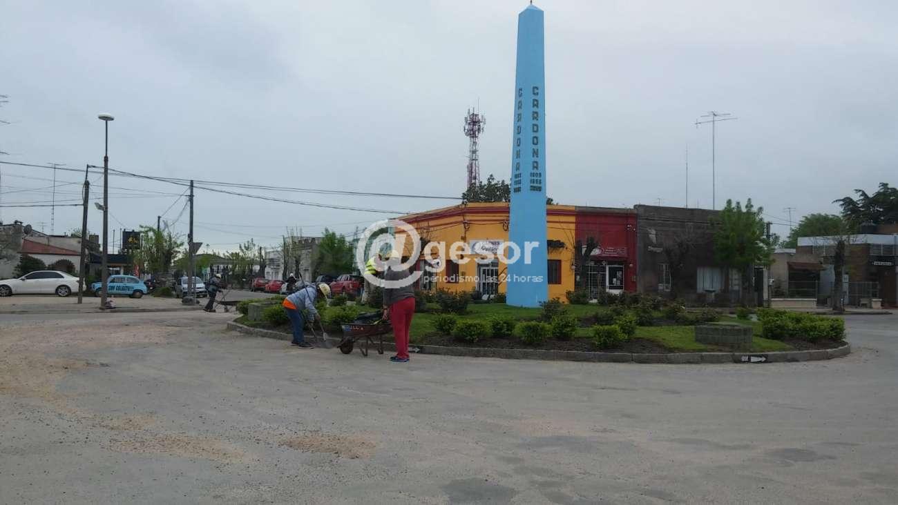 Paralelamente, el municipio sigue realizando trabajos de jardinería en la rotonda del Obelisco, reponiendo plantas, regando y cortando el césped, al tiempo que se reacondicionó el pavimento que circunvala dicha plazoleta.