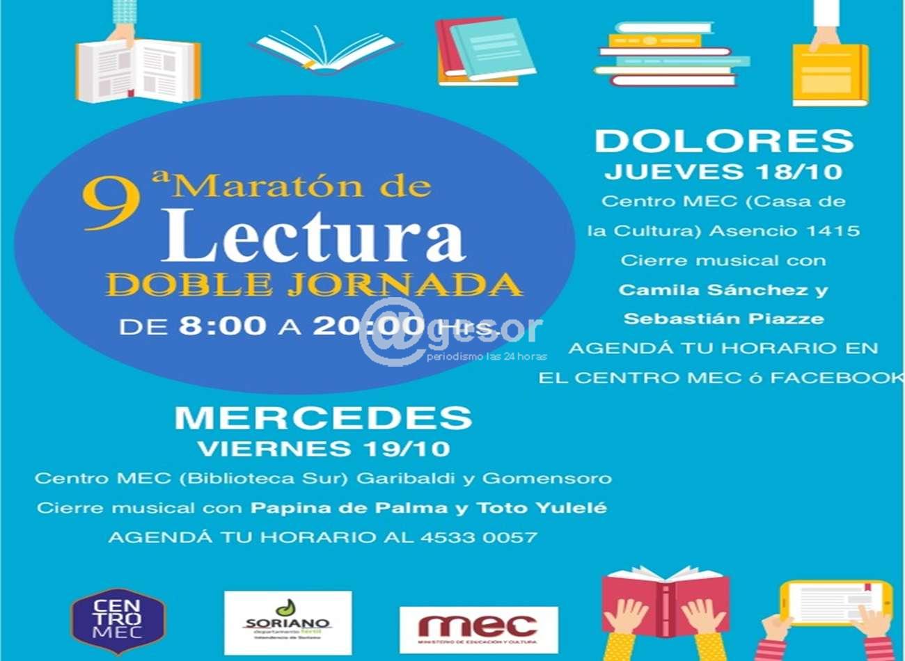 Esta 9na.Maratón de Lectura se realizará en Casa de la Cultura de dolores (Asencio 1415) y en el Centro MEC (Biblioteca Sur) de Mercedes, ubicada en calle Garibaldi y Gomensoro.