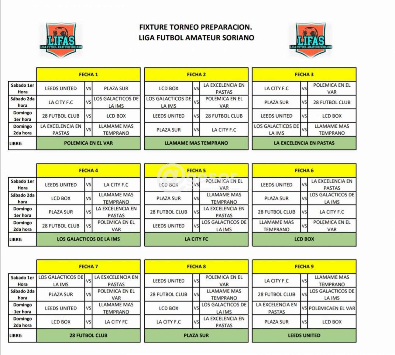 Este sábado se inicia la actividad de la Liga Fútbol Amateur Soriano (LIFAS) con el Torneo Preparación, con partidos que se jugarán los días sábados y domingos.