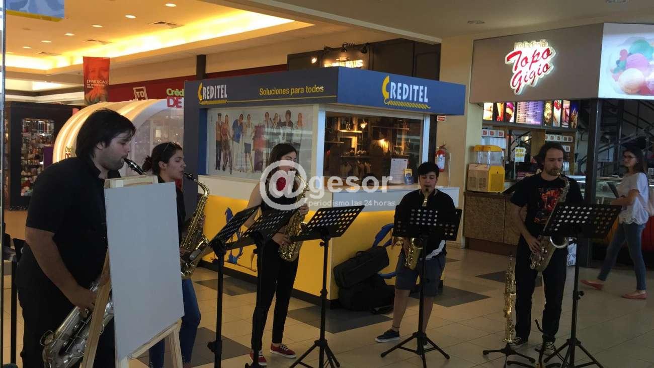 Este pequeño recital de los músicos mercedarios se cumplió en la Terminal  Shopping  en el marco de las actividades que el MIDES y otras instituciones vienen realizando durante este mes en los que se pretende sensibilizar sobre la problemática de  la violencia de género en nuestra sociedad.
