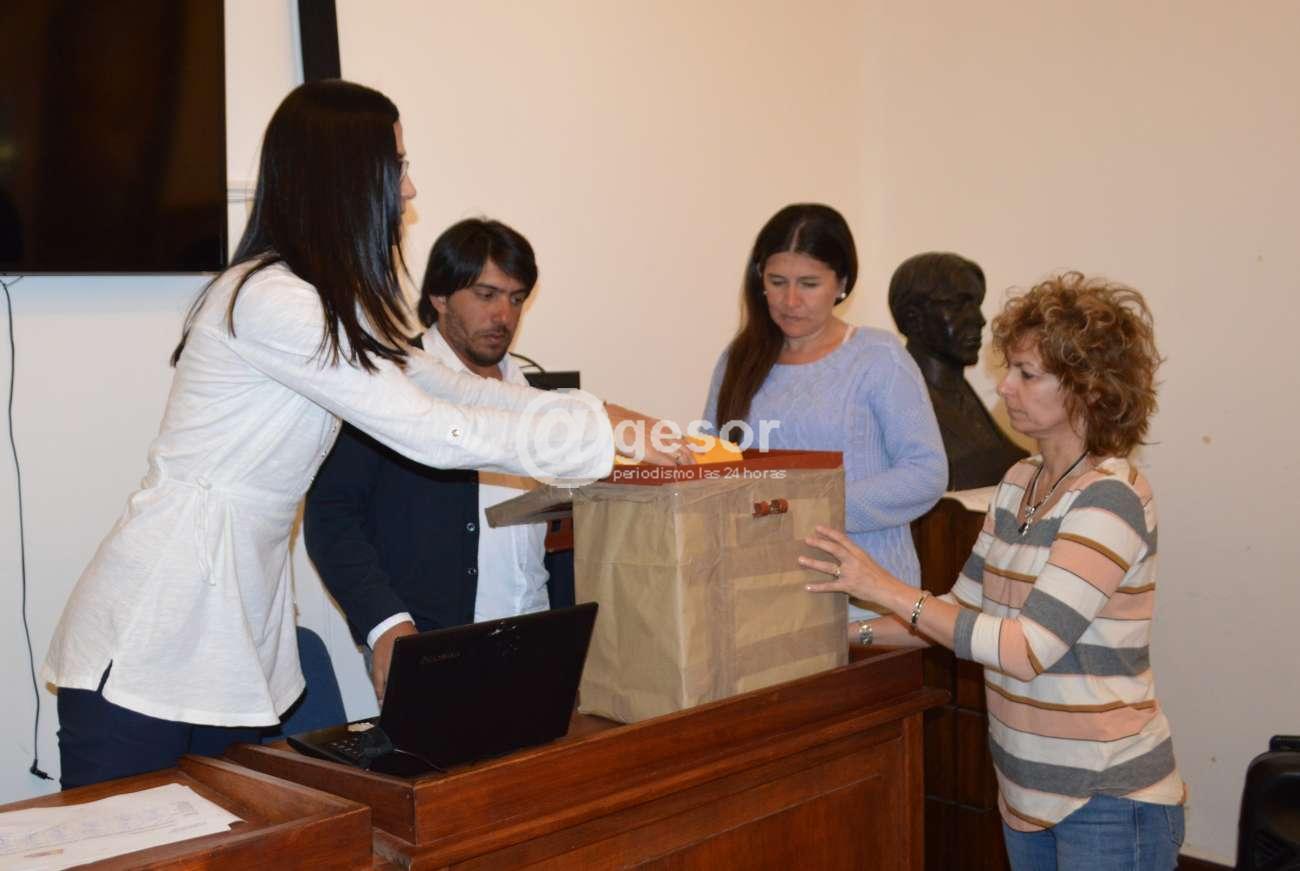 La apertura de la urna se realizó en Biblioteca Eusebio Giménez, siendo supervisada esta instancia por la Esc. Magdalena Arnaiz.