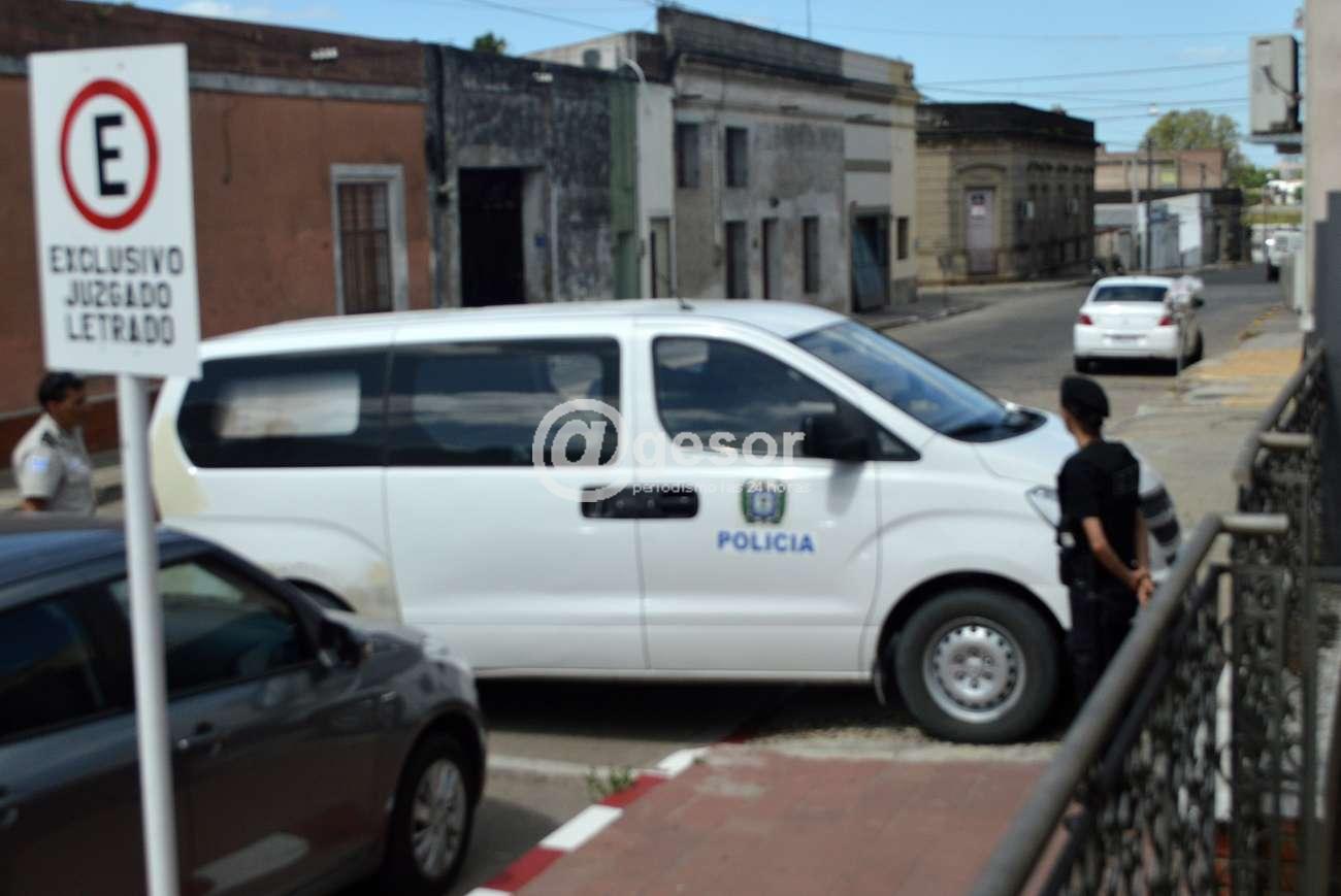 El primer testigo llamado por la Defensa fue el recluso Jonathan Damián Ferreira Ortiz (en la fotografía ingresa el móvil del INR que lo trasladó desde la Unidad donde está alojado), quien se encuentra cumpliendo condena por esta misma causa.