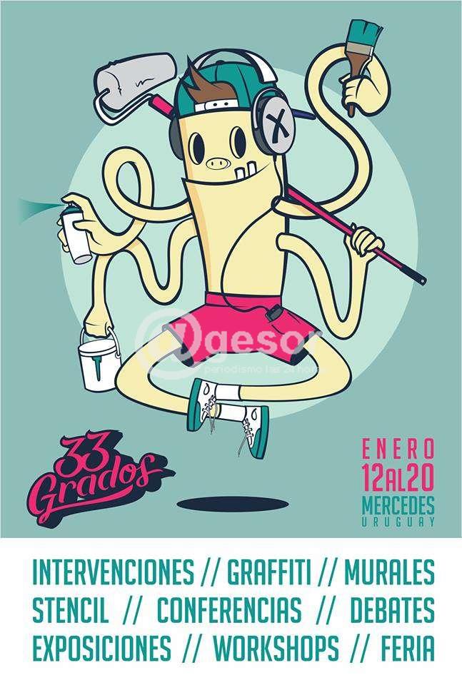 Al concluir el 2018, la organización informó a @gesor que se recibieron más de 200 inscripciones de artistas de diferentes países para participar del 33GradosFestival de Arte Urbano. Como oportunamente informáramos este Festival se realizará en paralelo al desarrollo del Encuentro internacional de músicos Jazz a la Calle, por tanto Mercedes, además de música se llenará de color.