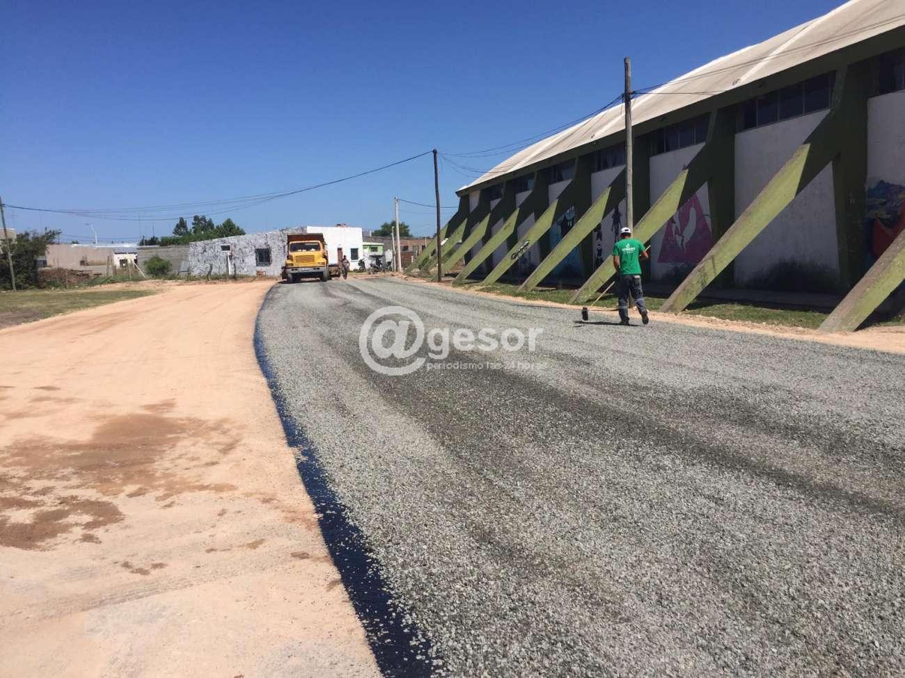 Se aplicó asfalto con gravilla en todo el entorno del complejo que incluye el gimnasio y la piscina pública, completando una superficie de 3.500 metros cuadrados.