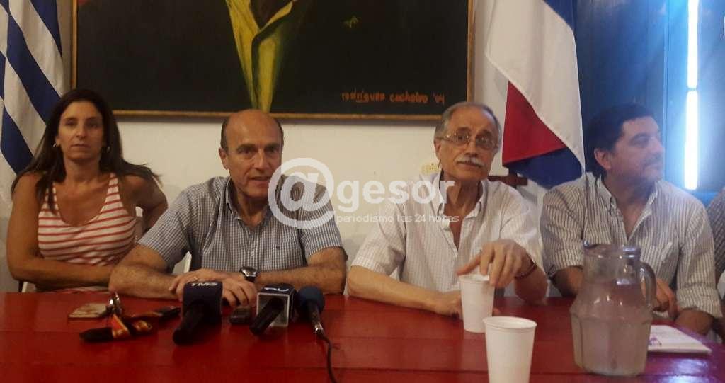 Acompañado del presidente del FA Soriano, Roque Arregui, y distintos referentes de los sectores que apoyan su precandidatura, brindó una conferencia de prensa en la sede del Fuerza Politica en Mercedes.