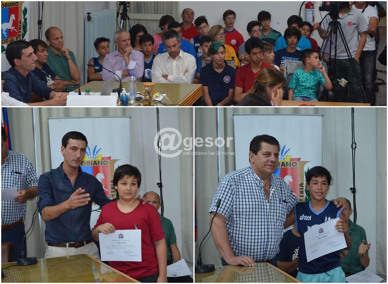 Los liceales mercedarios que obtuvieron el campeonato nacional Junior NBA fueron homenajeados por la Junta Departamental de Soriano. El plantel de basquetbol que representó al Liceo Nº 2 “Luis A Zanzi” también estuvo ingregado por alumnos del Colegio San Miguel y del LiceoNº 3, obteniendo recientemente este campeonato y fueron reconocidos por los ediles, junto con sus profesores. La sesión fue seguida con atención por los padres de los liceales, al tiempo que el prof. Alvaro Polero, en representación del grupo destacó el trabajo realizado y el esfuerzo de las familias para posibilitar la participación de los jovencitos en este torneo.