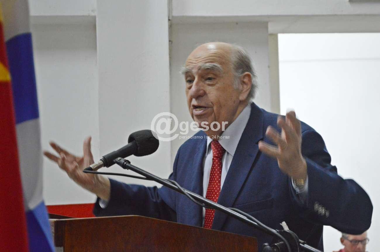 En un acto en que estuvo acompañado en la mesa por los Diputados Germán Cardoso, Tabaré Viera y Walter Viera, a su lado el Secretario General del PC de Soriano Ariel Gabarrot, el presentador oficial, José María Romero, recordó la figura del recientemente desaparecido, Prof. Alejandro Demarco que si bien era duraznense se radicó en Mercedes en la década de los 70 siendo Director del Liceo Campos y en 1989 fue candidato a Diputado por la Corriente Batllista Independiente de Manuel Flores Silva, falleciendo hace pocos días en Montevideo a los 97 años realizándose un minuto de silencio. Tras entonarse el Himno Nacional uruguayo, hicieron uso de la palabra los diputados mencionados y posteriormente convocado con la marcha del Partido Colorado, el Dr. Julio María Sanguinetti se dirigió a los presentes, en una exposición que duró casi 40 minutos y de la que extraemos algunas partes.