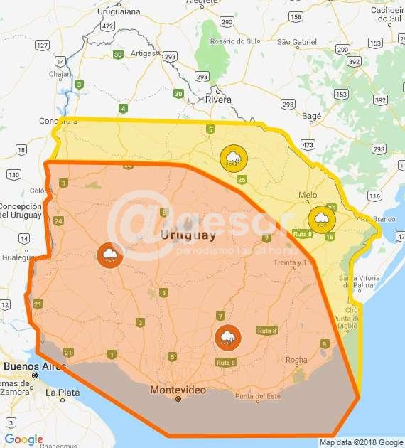 Inumet explicó que se trata de una masa de aire húmeda e inestable afecta el país, generando tormentas algunas puntualmente fuertes y que en algunas zonas de tormentas se podrán registrar lluvias intensas en cortos períodos de tiempo, ocasional caída de granizo, intensa actividad eléctrica y rachas de viento fuertes.