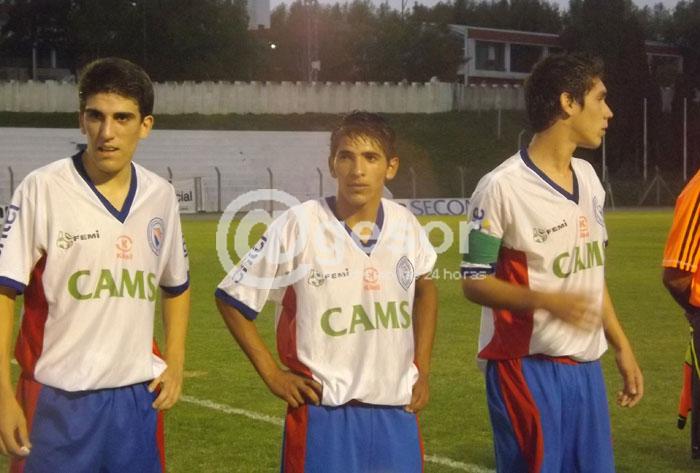 Foto: De izquierda a derecha, Joaquín Godoy (que se retirara sentido en Colonia), Jonathan Herrero y el Capitán Jonathan Vespa, jugadores de la selección juvenil de Mercedes de buena campaña en la Copa nacional de OFI.