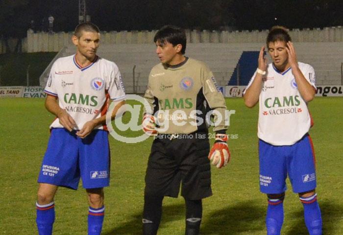 NOTA. En la foto de @gesor, de izquierda a derecha el delantero Bernardo Golly (autor del segundo gol de Mercedes, mediante penal), José Luis Manzanares y Nicolás Barrios.