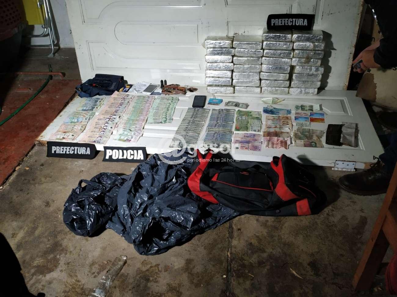En un gran operativo, la Armada Nacional incautó ladrillos presumiblemente de cocaína, vehículos con chapas nacionales, embarcación argentina, dinero nacional y extranjero y un arma de fuego.