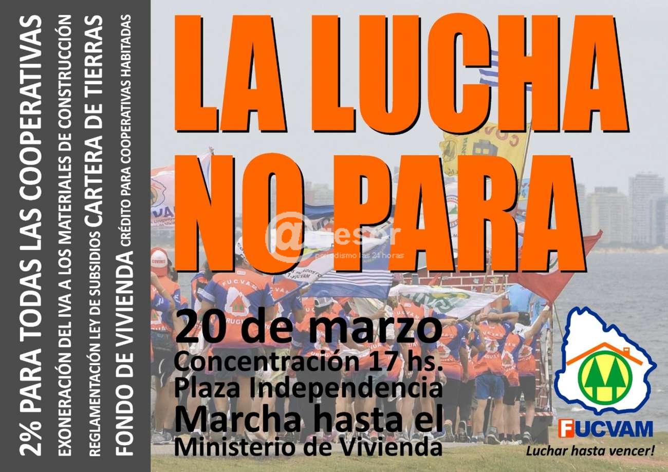 Una serie de actividades estará cumpliendo la Dirección Nacional de la FUCVAM desde este miércoles y que también incluirán movilizaciones de cooperativistas en la lucha por las reivindicaciones porque lo dicen en su propio eslogan de convocatoria "La lucha no para".