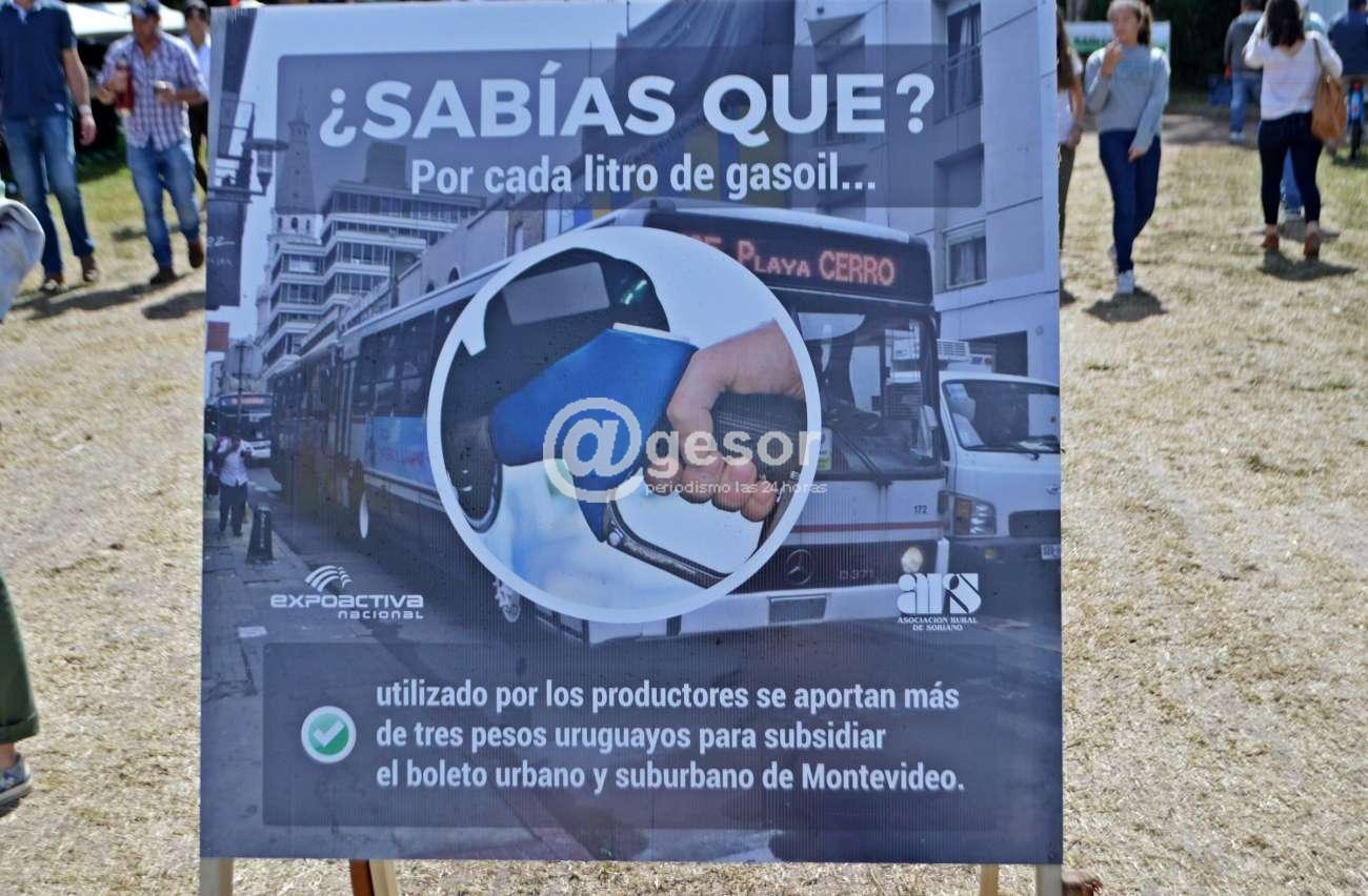 por cada litro de gasoil utilizado por los productores se aportan más de tres pesos uruguayos para subsidiar el boleto urbano y suburbano de Montevideo