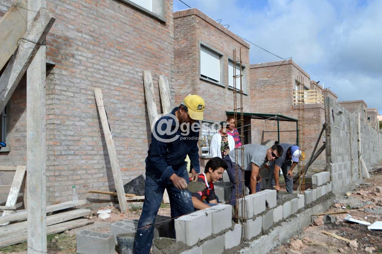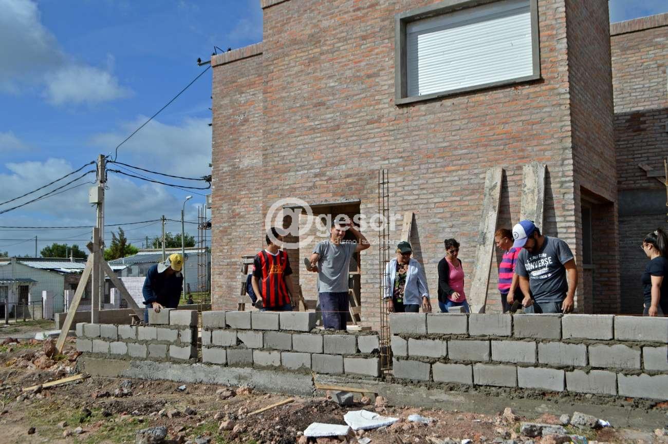 En un ambiente distendido de trabajo, lo integrantes de las familias dedicaban horas de labor de ayuda mutua levantando muro exterior, también otras tareas de sanitaria y trabajos relacionados con partes externas de las viviendas buscando culminar con los detalles para poder dar por finalizada esta etapa de construcción, allí junto al campo de juego del Mercedes Rovers F.C. en oto de los barrios cooperativos que se han conformado en Mercedes en ese crecimiento demográfico que ha tenido la ciudad, de la mano de las viviendas para familias realojadas por el sistema de autoconstrucción y especialmente en distinto puntos de la capital departamental y también en el Interior de Soriano, con el movimiento cooperativo y el sistema de ayuda mutua en su gran mayoría nucleado a FUCVAM.