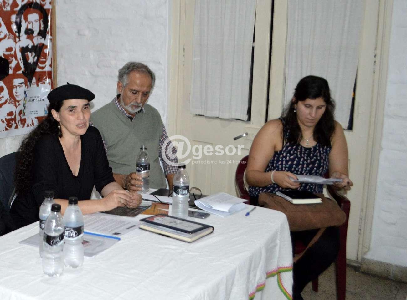 Aguirre comenzó señalando "me gustaría hacer énfasis en parte de lo eslabones del Poder Judicial que no funcionan, acá hay una estrategia dilatoria en los procesos de Justicia para que la impunidad biológica como la denominan los compañero abogados, prospere, acá se mueren las víctimas y los victimarios, porque el tiempo pasa y porque el sistema judicial se toma un tiempo que no hay para hacer su trabajo, que en realidad no hace. O busca todas las maneras de hacer que lo hace y no hacerlo, con distintas estrategias dilatorias, ahora esta última es el pedido de inconstitucionalidad, este recurso que es una nueva chicana de los defensores de los represores contra la Fiscalía Especializada en Crímenes de Lesa Humanidad, que era la última conquista de las organizaciones sociales, del movimiento popular. Un reclamo que teníamos hace tiempo, porque veníamos hace años llevando las causas penales adelante teniendo que atravesar por situaciones reiteradas, de audiencias que no se hacían porque las causas las tenían en veinte fiscalías distintas, cambiaban de fiscal, cambiaban de jueces, se perdían los expedientes".