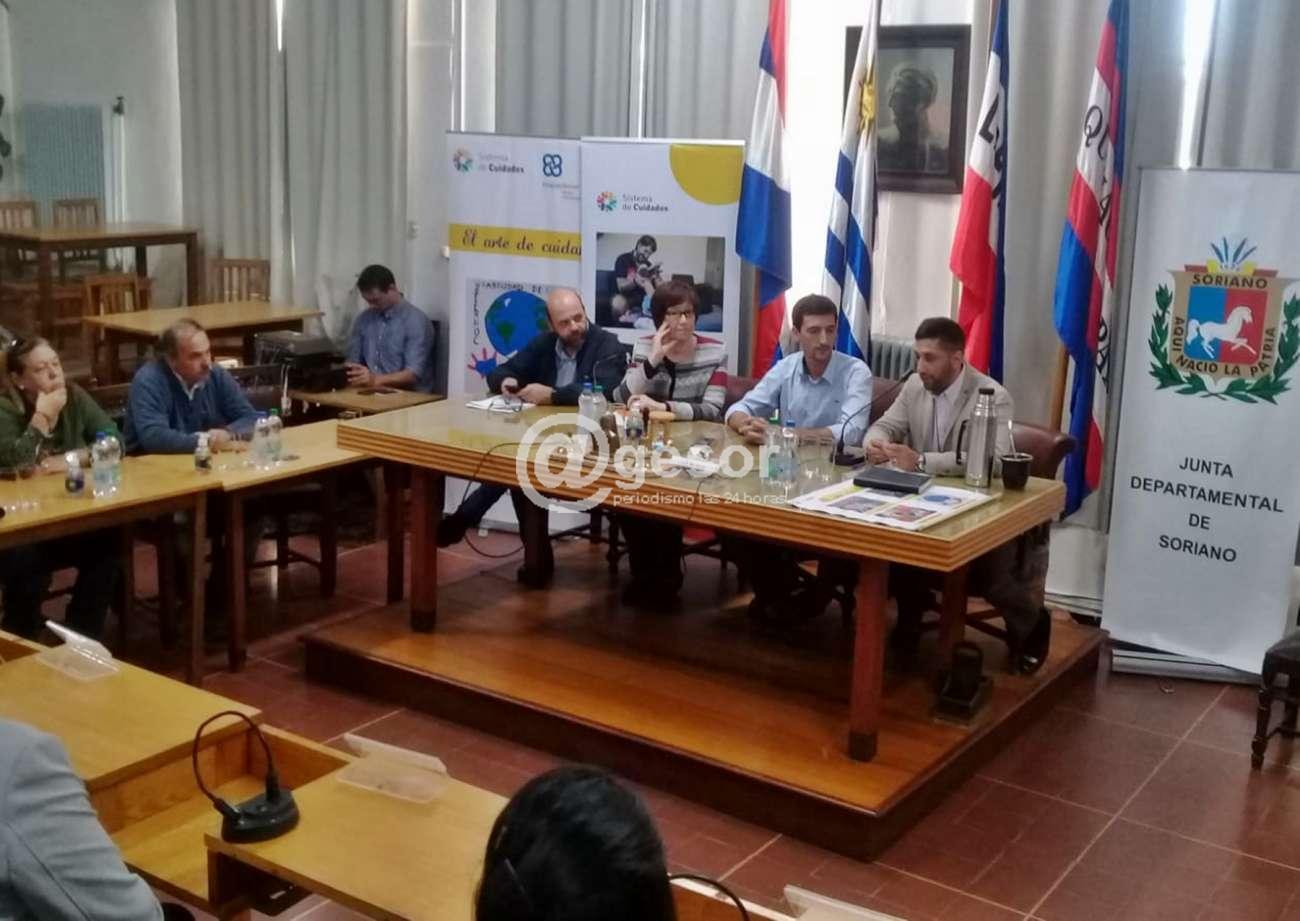 En la mañana de este martes, la Mesa Interinstitucional de Políticas Sociales (MIPS) se reúne en la sala de sesiones "Carlos Rüsch" de la Junta Departamental de Soriano recibiendo la visita de la Ministra de Desarrollo Soriano, Maestra Marina Arismendi, a quien acompaña el responsable del Sistema de Cuidados Julio Bango, siendo anfitriones el Presidente de la Junta Departamental Damián De Oliveira y el Director Departamental del Mides Dr. Pablo Marrero.