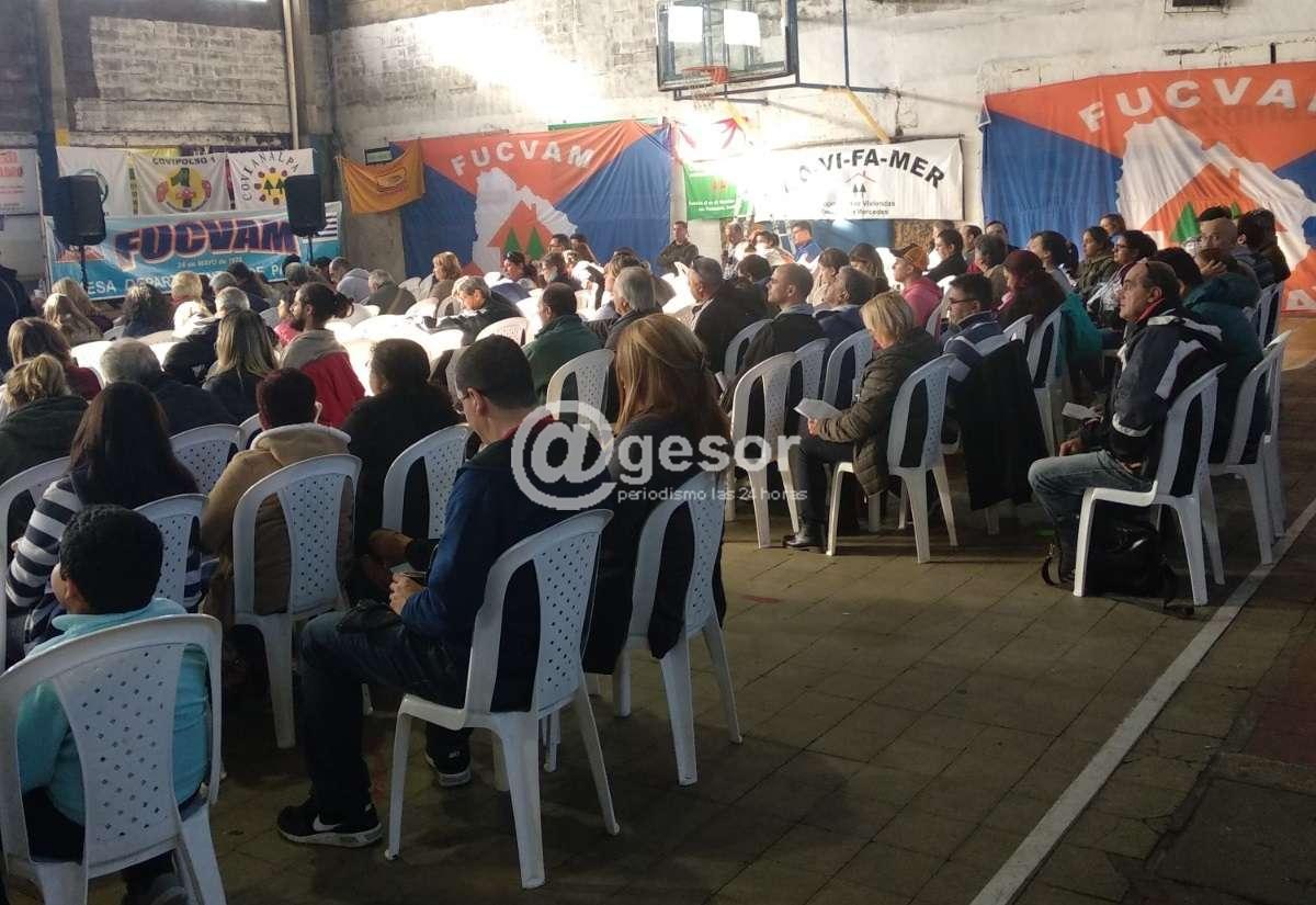 Con una nutrida concurrencia se desarrolla en Mercedes la Asamblea Nacional de FUCVAM. Como oportunamente informáramos la actividad se realiza en instalaciones del Club Esparta contándose con la `participación de dirigentes y cooperativistas de todo el país. El temario que se viene discutiendo tiene que ver con el conflicto que mantiene FUCVAM con el gobierno nacional en lo que tiene que ver con el reclamo de la rebaja del interés al 2%, y la quita del IVA a los materiales de construcción. Además de la creación del Fondo Nacional de Vivienda; además de la reelección parcial o total de autoridades.