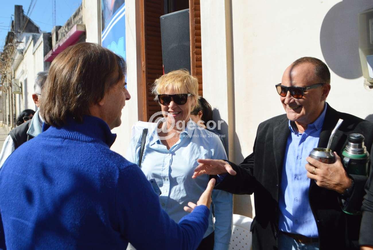 En la fotografía Lacalle Pou saluda al Cnel (r) Arquímides Cabrera y su señora al llegar a la presentación de la precandidata a la Intendencia de Soriano por la Lista 9000 del Partido Nacional en Mercedes