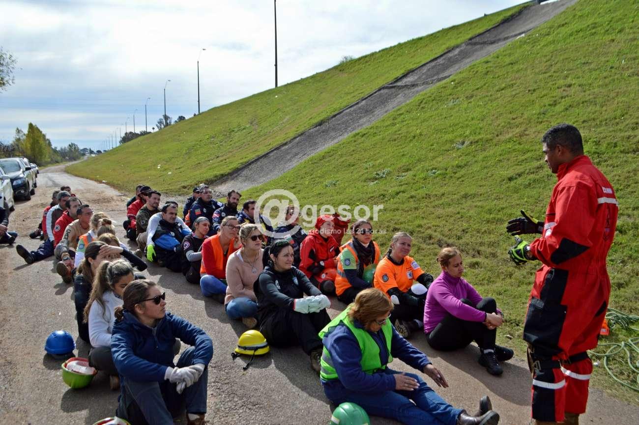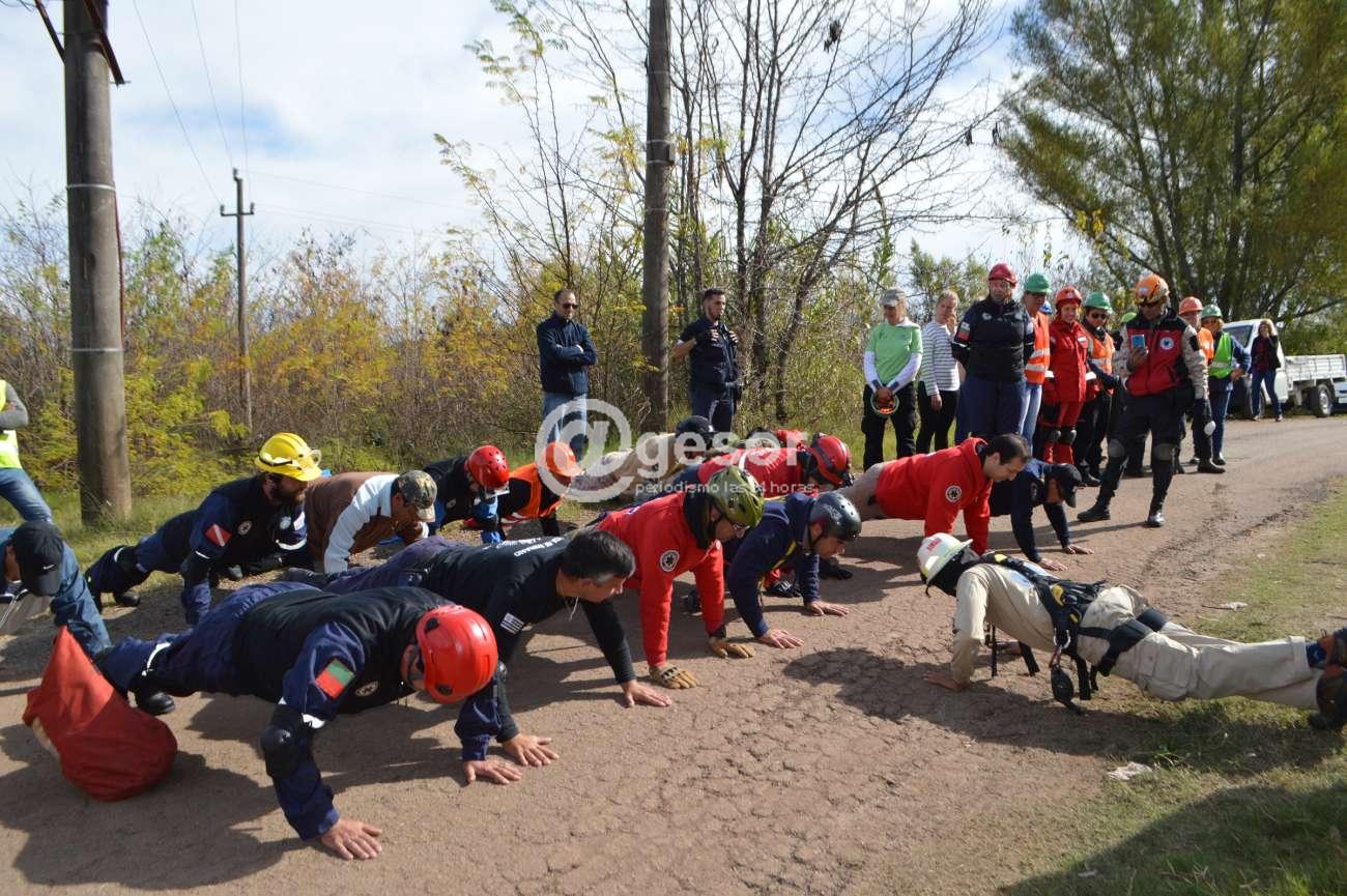 Este sábado se realizaron a lo largo de varias horas, ejercicios por etapas, con 30 voluntarios que están participantes del Primer Ejercicio de Comunicaciones de Emergencia Workshop de Rescatistas Latinoamericanos que está desarrollándose en Mercedes, con la organización de UCRE Uruguay y su filial UCRE Soriano. Las actividades estuvieron vinculadas a formación y capacitación para trabajar en altura, tanto asceso como descenso y fueron guiadas por los instructores internacionales que llegaron de diferentes países para ser parte de este encuentro que tiene su centro de ooperaciones en el parque Mauá.