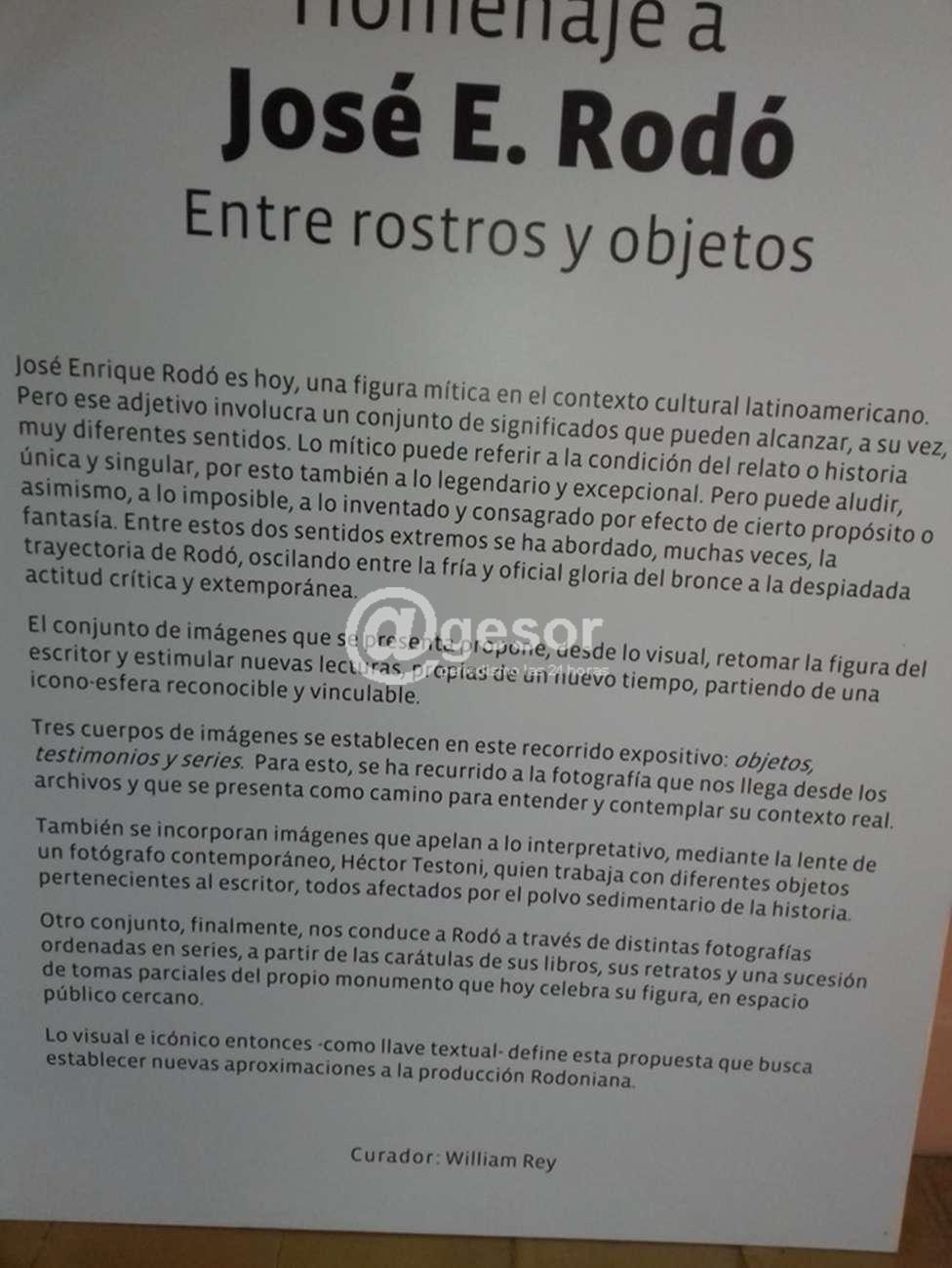 Se trata de una muestra fotográfica y posterior charla sobre la figura de José Enrique Rodó. La actividad es organizada por la Sociedad Rodoniana, la Comisión de Cultura y el Municipio local. El obetivo de este evento será que los niños y jóvenes conozcan la vida y obra de José Enrique Rodó.
