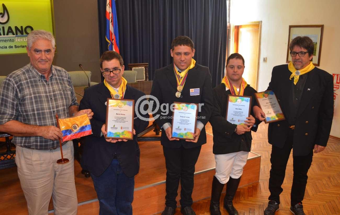 Bernardo Fuentes, Darío Balao (de Cardona) y Martín Hareau, junto a sus entrenadores Mariana Fagalde y Ruben Costa fueron homenajeados por su destacada actuación en esta competencia. Los jóvenes además de representar a Soriano, forman parte de dos centros de equinoterapia del departamento, que diariamente cumplen un trabajo importantísimo en la rehabilitación de personas con discapacidad.