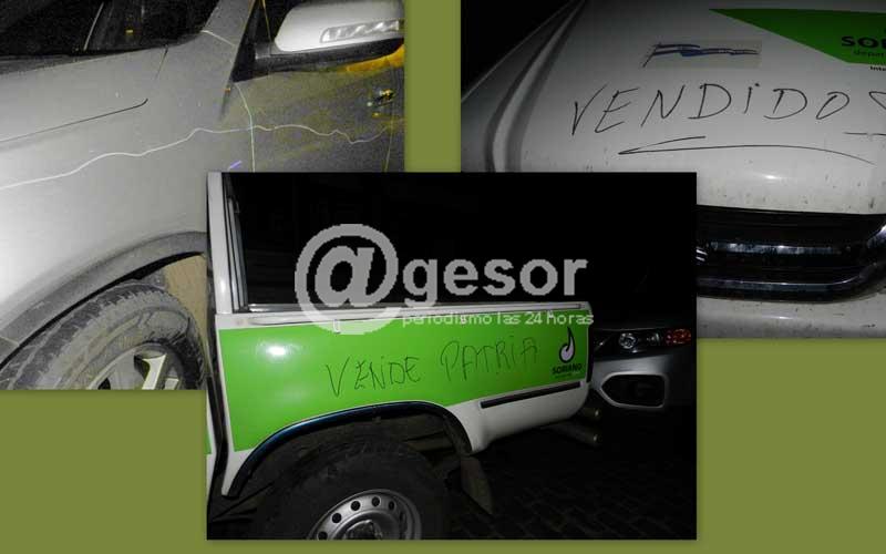 A lo que @gesor da cuenta en nota anterior respecto de los agravios, insultos, a los ediles aun en el recinto por parte de integrantes de las barras, al retiro del cuadro de Juan A. Lavalleja que descolgaron para llevárselo y fue reintegrado por uno de los referentes de la movilización, se sumaron más insultos y agravios a ediles en los pasillos y en la vereda del frente del palacio comunal, dejaron carteles agraviantes hacia el Intendente Besozzi, dentro del recinto municipal y al retirarse rayaron el lateral izquierdo del vehículo oficial en que se traslada habitualmente en Intendente Besozzi, así como también escribieron con fibras, "vende patrias" y "vendidos" en camioneta de la Intendencia. A todo ello debe agregarse en una actitud incomprensible, los dichos del concejal de Nueva Palmira, Heber Márquez que estaba acompañado por el Alcalde de Nueva Palmira Andrés Passarino, cuando aquel dijo, dirigiéndose al funcionario de la Junta Departamental que estaba con su vehículo junto a las camionetas, Horacio Scaldaferro: "si no querían que les rayaran los autos hubieran votadoa favor", lo que generó mayor indignación entre ediles nacionalistas presentes en el lugar y funcionarios jerárquicos de la comuna que habían concurrido a ver como quedaron los vehículos. Un lamentable final que una instancia democrática como la que se vivió este lunes en la Junta Departamental, no se merecía.