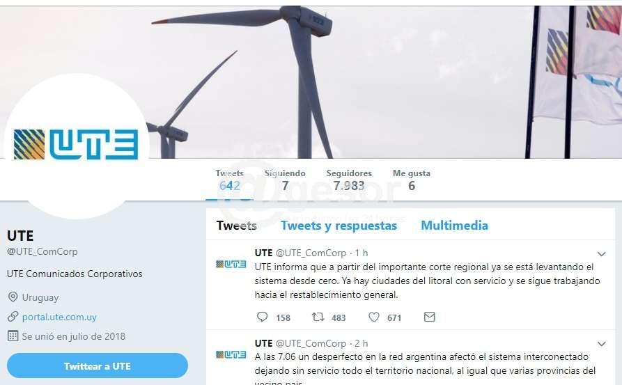 En otro twitter UTE hace aproximadamente una hora agregó “ya se está levantando el sistema desde cero. Ya hay ciudades del litoral con servicio y se sigue trabajando hacia el restablecimiento general”.