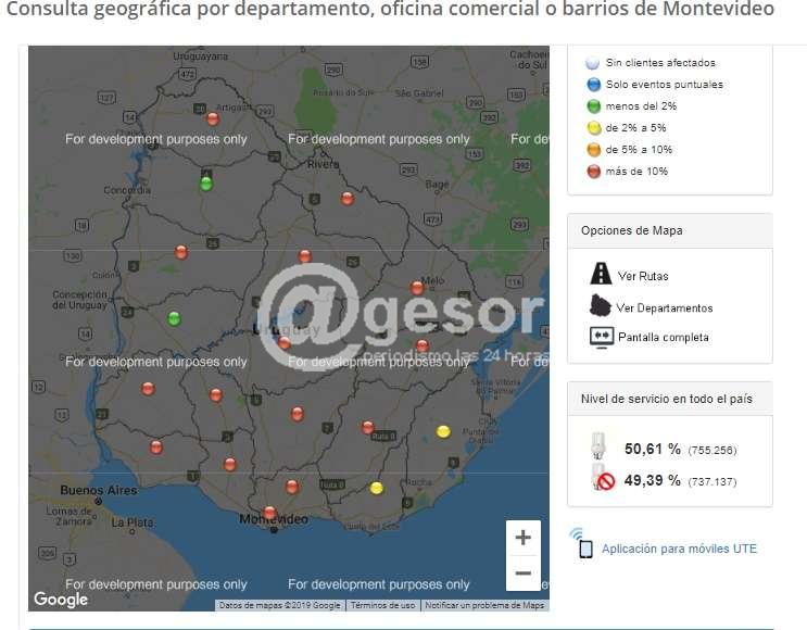 En nuestro departamento a esta hora son 6.391 los clientes afectados, un 18,08% del total de Soriano. En todo el país el 49,39% de los clientes de UTE todavía no tienen servicio de energía eléctrica.