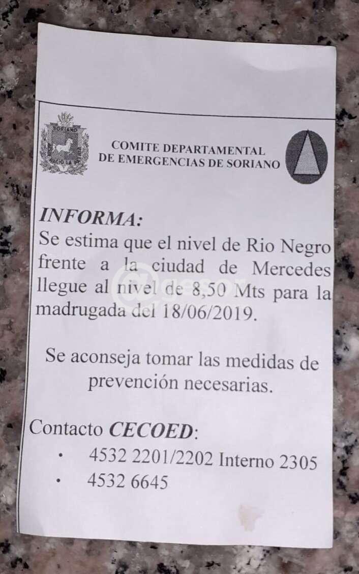 Sesenta y una familias ya fueron evacuadas por el Comité Departamental de Emergencia y se prevé que en las próximas horas se sumen algunas otras, debido a la rápida crecida del río Negro frente a Mercedes. El panorama con que comenzó el lunes cambió rápidamente con el correr de las horas, por la rápida crecida del río que se prevé que este miércoles llegue a un pico de 8,50 metros por sobre su nivel. Eso obligó a la rápida acción de los diferentes equipos buscando que las familias salieran de sus hogares “a pie seco” es decir sin la premura de tener el agua adentro.