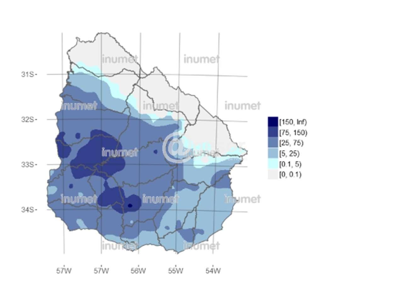 Villa Darwin con 102 milímetros es la localidad del departamento donde se ha registrado el mayor volumen de lluvia en las últimas horas.