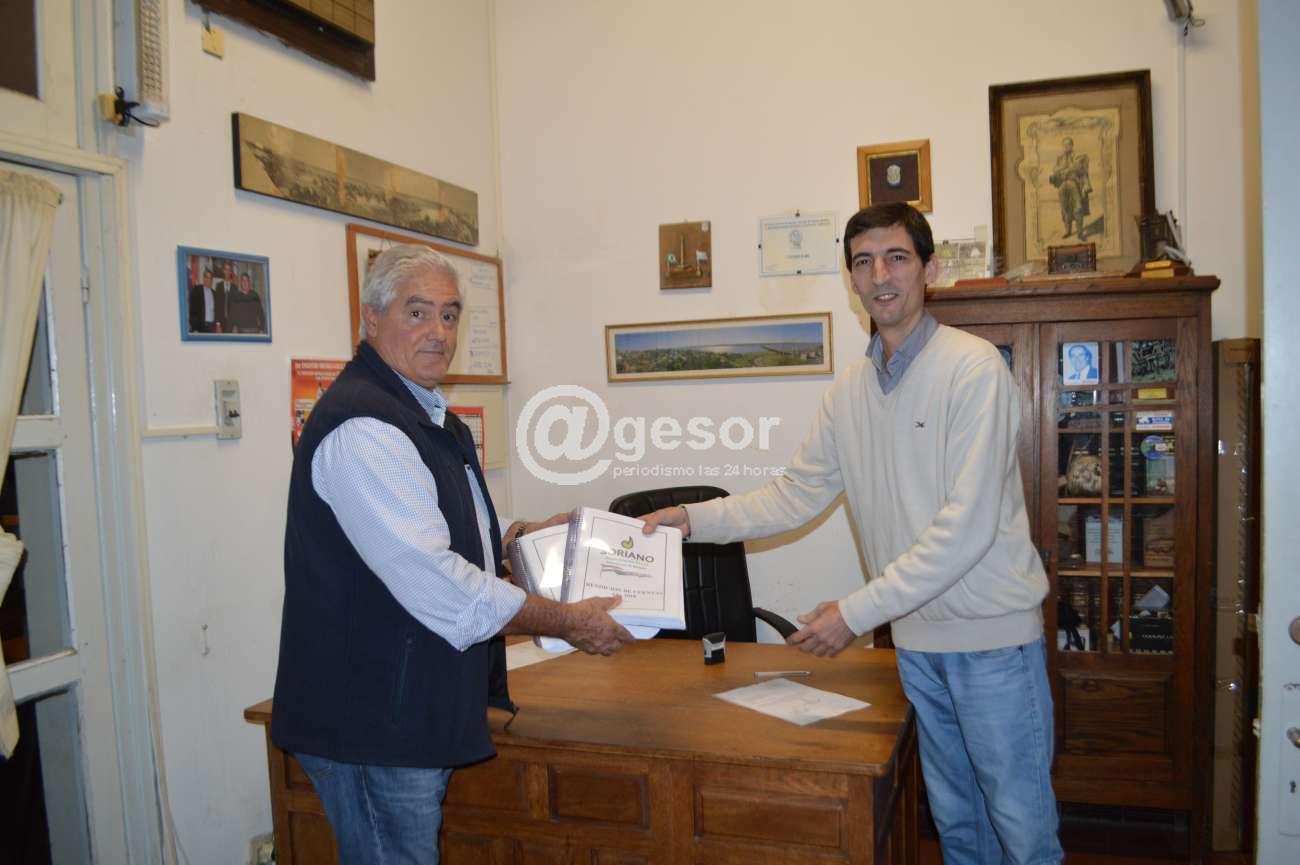 A las 19.30 horas de este sábado -un día antes del plazo de vencimiento- la Intendencia de Soriano presentó la Rendición de Cuentas del ejercicio 2018, entregándola el Intendente Agustín Bascou Gil, junto al Secretario General Dr. Germán Caballero y al Director de Hacienda Cr. Fernando Borio, siendo recibida por el Presidente de la Junta Departamental de Soriano, Damián De Oliveira en su despacho.