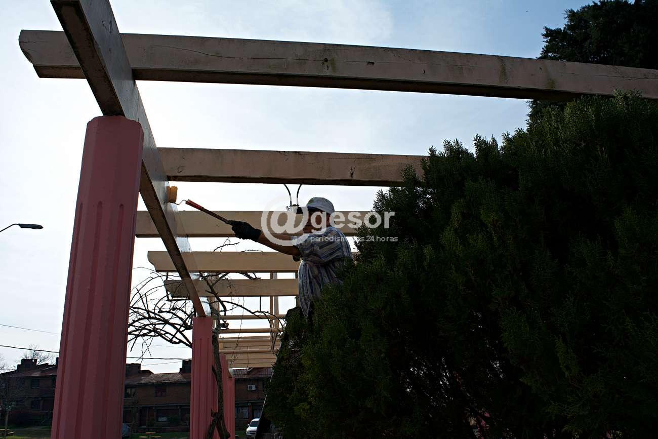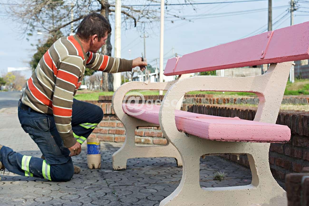 Tal es así que en una intervención a cargo de personal del Dpto. de Talleres Municipales, se realizan trabajos en los canteros centrales, reparando y pintando el mobiliario urbano dispuesto en sus plazoletas, las pérgolas y las estructuras de metal de los artefactos de iluminación.