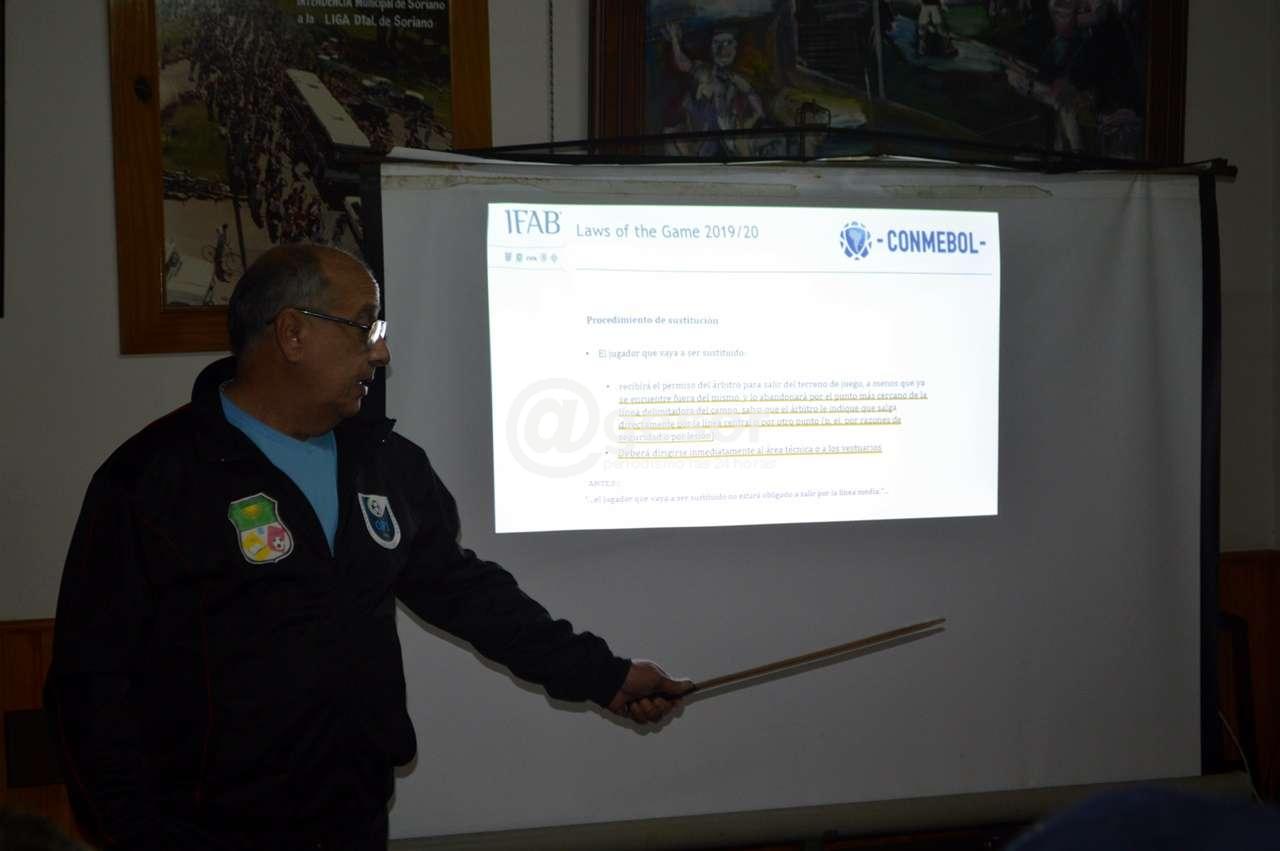 Se cumplió este lunes en sede de la Liga Departamental de Fútbol de Soriano, una charla informativa, sobre las actualizaciones a las reglas, por parte de los instructores de OFI, Jesús Applán y José Sierra, para que luego puedan tener las bases con respecto a las determinaciones de los árbitros, la cual contó con baja concurrencia.