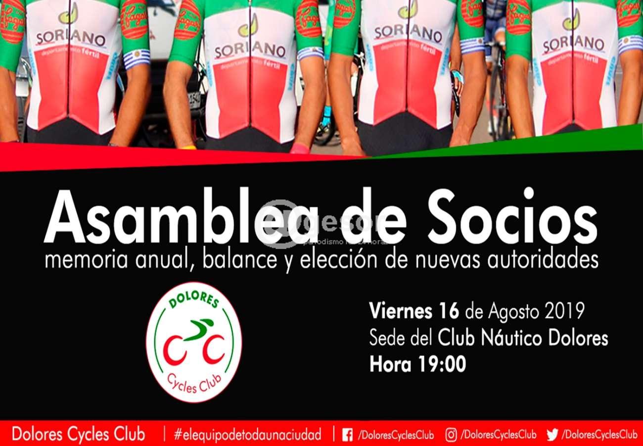 Dolores Cycles Club cita a sus asociados a la Asamblea General a llevarse a cabo el día Viernes 16 de Agosto del 2019, a las 19:00 horas, en el local de la Sede Social del Club de Pesca y Náutico Dolores (calle Carlos P. Puig esquina Antonio Bachini).