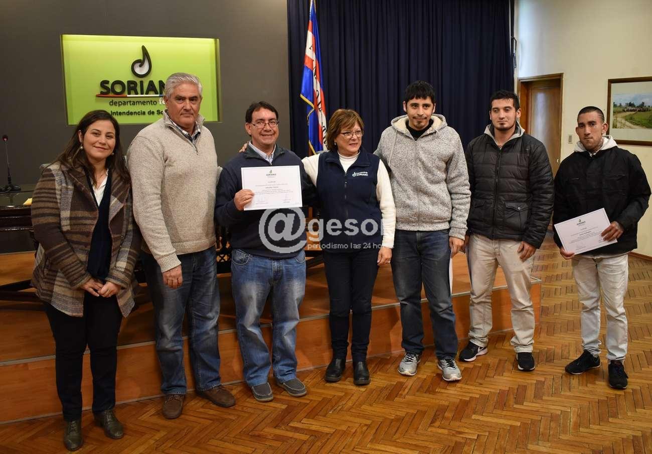El intendente de Soriano hizo entrega este viernes de los diplomas a los cuatro beneficiarios del programa de pasantías inclusivas que lleva adelante la intendencia a través del departamento de Acción Social y familia .