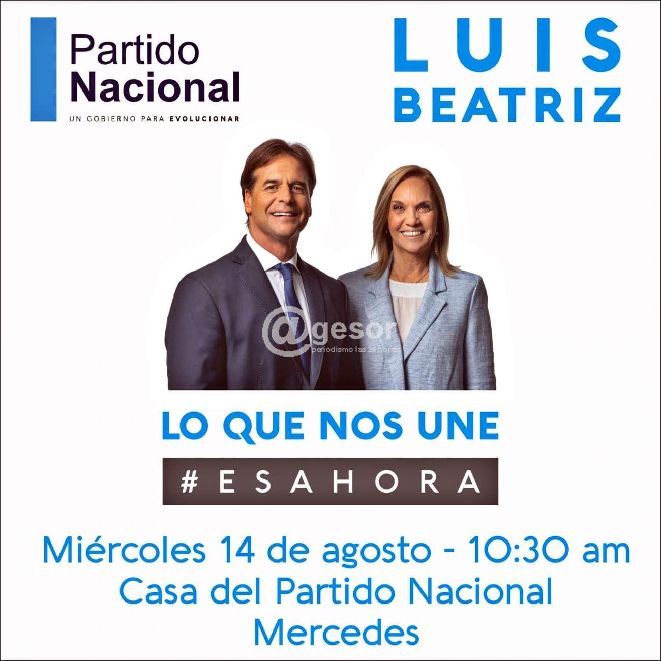 Este miércoles 14 la fórmula Luis - Beatriz estará en Casa del Partido Nacional de Mercedes. Será a las 10.30 horas donde brindará conferencia de prensa abierta al público