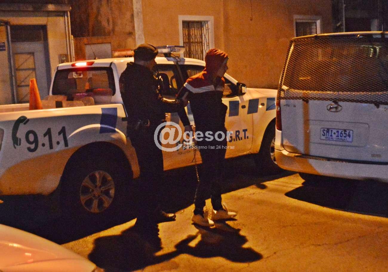 A posteriori se concurre a Hotel Elizondo, donde la propietaria accede a la inspección de una de las habitaciones ocupada por una pareja. Los ocupantes de la habitación al percatarse de la presencia policial intentan huir por una ventana motivo por el que debió de ingresarse en forma violenta y una vez en el interior se logra la detención de un masculino y una femenina ambos mayores de edad. En registro de practica al masculino se le ocupa un envoltorio de nylon transparente conteniendo una sustancia color blanco que la persona manifiesta es