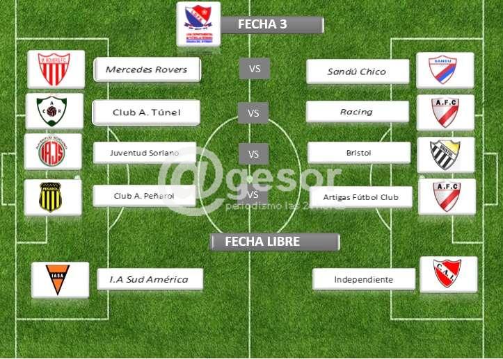 Jueventud Soriano - Artigas;  Bristol - Independiente,  tendrá fecha libre Peñarol.