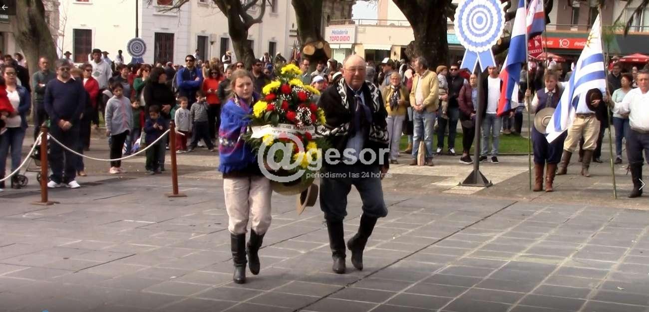 En plaza Independencia y con la presencia de autoridades departamentales encabezadas por el intendente de Soriano Agustín Bascou, Tras entonar las estrofas del Himno Nacional, se procedió a la colocación de ofrenda floral por parte de integrantes de la Unión de Instituciones Tradicionalistas de Soriano.