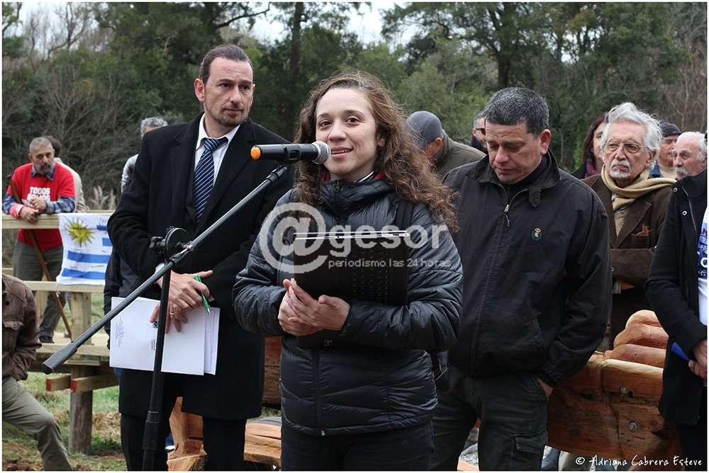 Verónica Matto recordó “en este predio perteneciente al Batallón de Paracaidistas Nº 14 fueron hallados los restos de dos personas detenidas y desaparecidas, Julio Castro, quien fue secuestrado en la vía pública, el 1 de agosto de 1977. Eran un pedagogo, docente y periodista, reconocido internacionalmente; y su desaparición suscitó denuncias en el ámbito nacional e internacional. Dirigente de la Asociación de Maestros del Uruguay, Convención Nacional de Trabajadores (CNT) y militante independiente del Frente Amplio. Casado y padre de dos hijos.