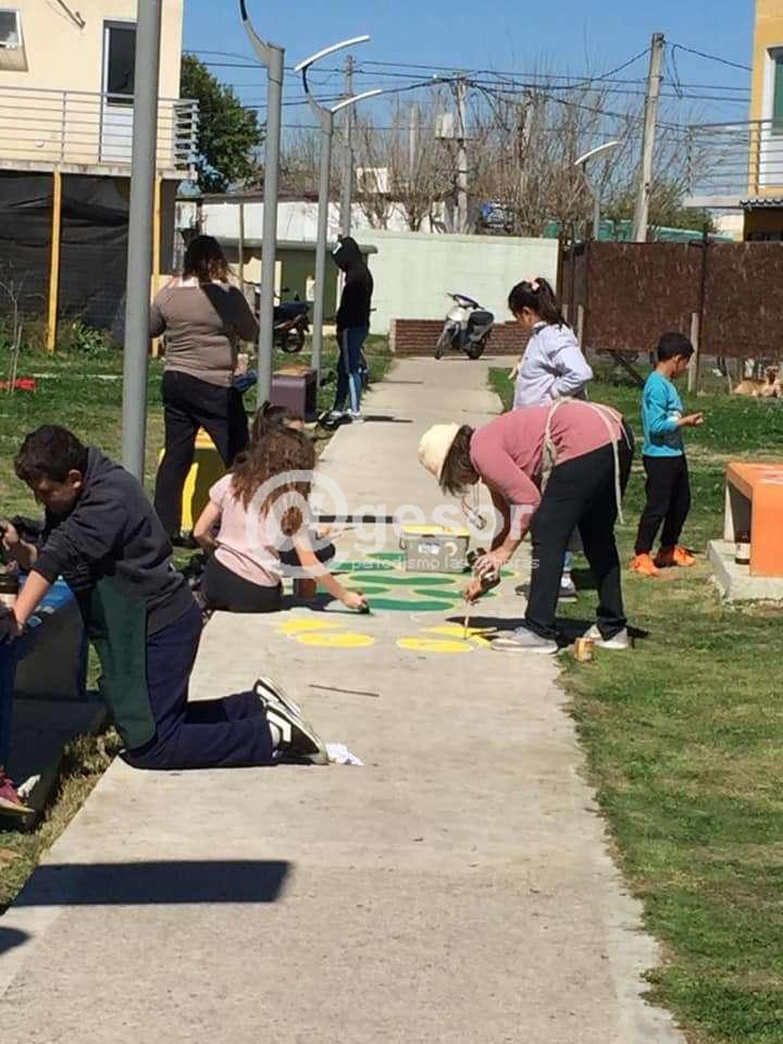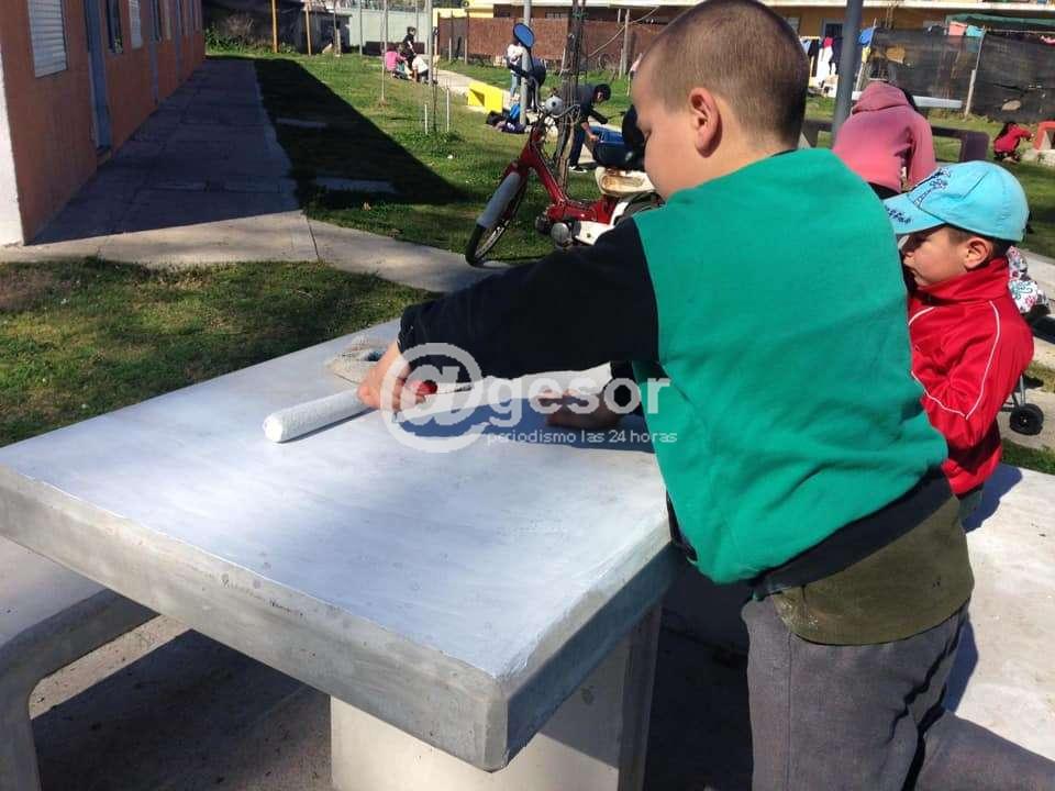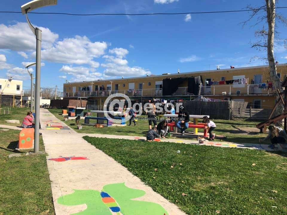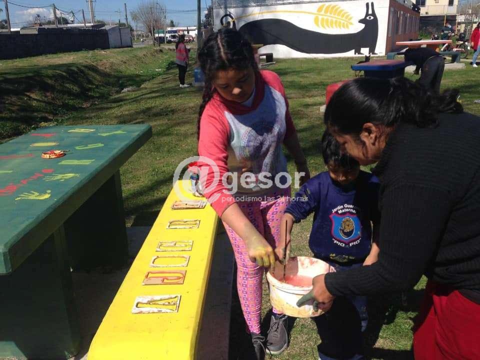Entre todos pintaron mesas, bancos y caminos que conforman el espacio de recreación y esparcimiento del complejo.