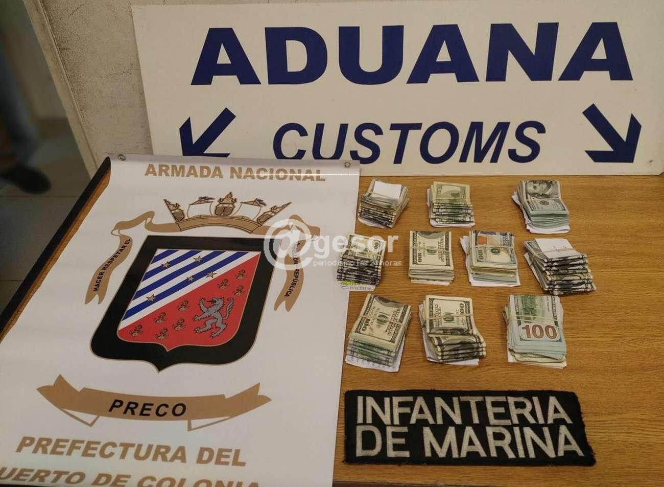 En un operativo conjunto entre Aduana, Prefectura de Colonia y el Comando de Infantería de Marina se incautaron cien mil dólares americanos, a un ciudadano argentino que pretendió ingresar ilegalmente al país oculto en su equipaje dentro de un vehículo.
