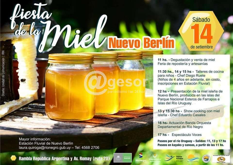 “Esta Fiesta de la Miel será el próximo sábado en Nuevo Berlín, iniciándose a las 11 de la mañana con degustación del producto, feria de repostería y artesanos. Desde las 11:30 y hasta las 14 horas habrá talleres de cocina para niños con el chef Diego Ruete e Inés Marracos, pudiendo participar chicos desde los 4 años en adelante, debiendo inscribirse en la Estación Fluvial.