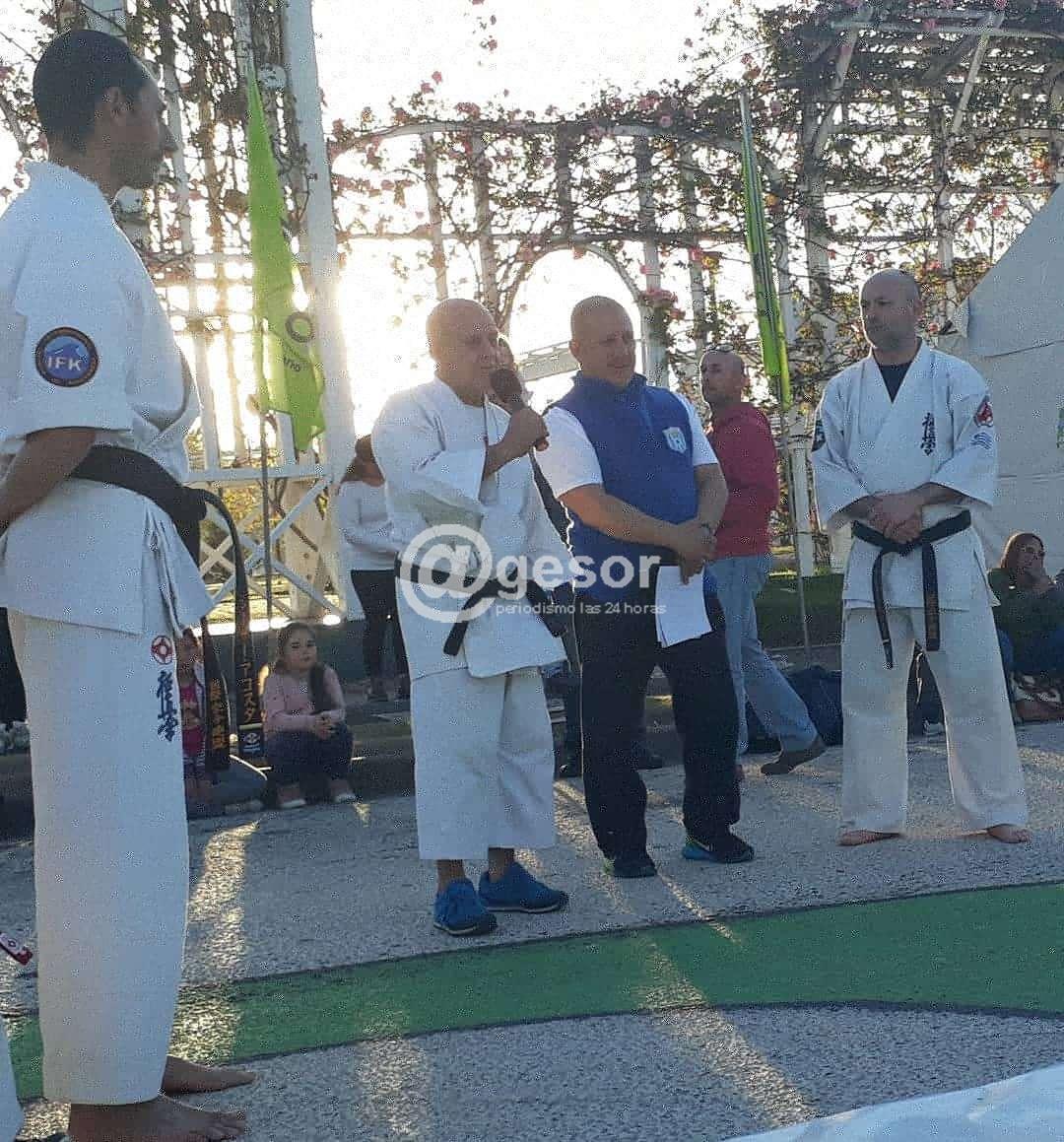 Posteriormente tuvo lugar una exhibición de Karate Kyokushin Kai a cargo de Sensei Mario Hornos, con parte de los integrantes de Yantsu Dojo pertenecientes a la Secretaría de Deportes de Soriano, asistido por Sensei César Acosta.