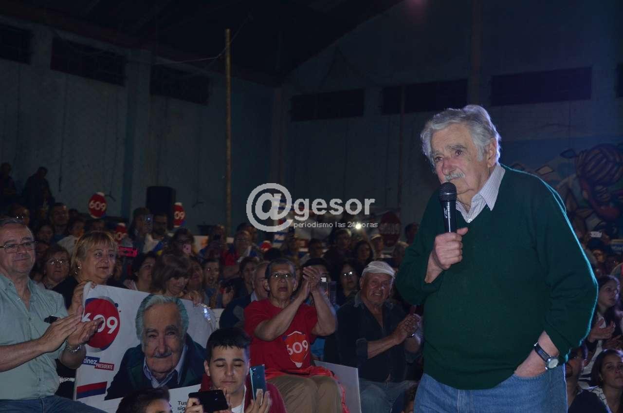 El ex Presidente José Mujica fue el orador central del acto realizado por las listas 90-609 y 5005 del Frente Amplio que postulan la candidatura de Enzo Malán a la diputación. El acto realizado en el gimnasio del Club Olímpico de Mercedes contó con numeroso público que escuchó atentamente el largo discurso del ex mandatario. En 42 minutos y medio Mujica realizó un recorrido por la actualidad política del país, con su característica forma de ser y de intercalar anécdotas. Dijo que quiere volver al Parlamento “para pudrirle la cabeza” a lo más jóvenes ya que entiende que “hay que volver a Batlle, al viejo” en alusión a José Batlle y Ordónez. Ya que entiende que se necesitan más políticas sociales “porque sinó hacemos una sociedad de fieras”. Acotando “necesitamos un mundo que pueda suturar las diferencias” y que “ahora como estamos en campaña electoral me asustan los pelotazos”. Criticando los anuncios de recortes de los partidos tradicionales y que entiende necesario que “hay que agrandar la torta, que es dar más trabajo”. Poniendo como ejemplo la inversión que hará en el país UPM con su planta de celulosa en el centro del país. Y que “no podemos estar como el perro del hortelano que no come ni deja comer”.