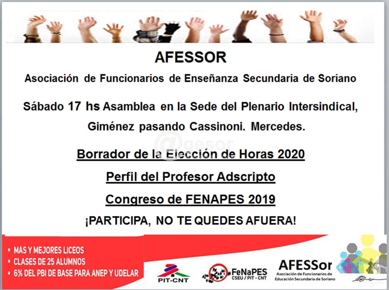 Sábado 17 hs Asamblea en la Sede del Plenario Intersindical, Giménez pasando Cassinoni. Mercedes.